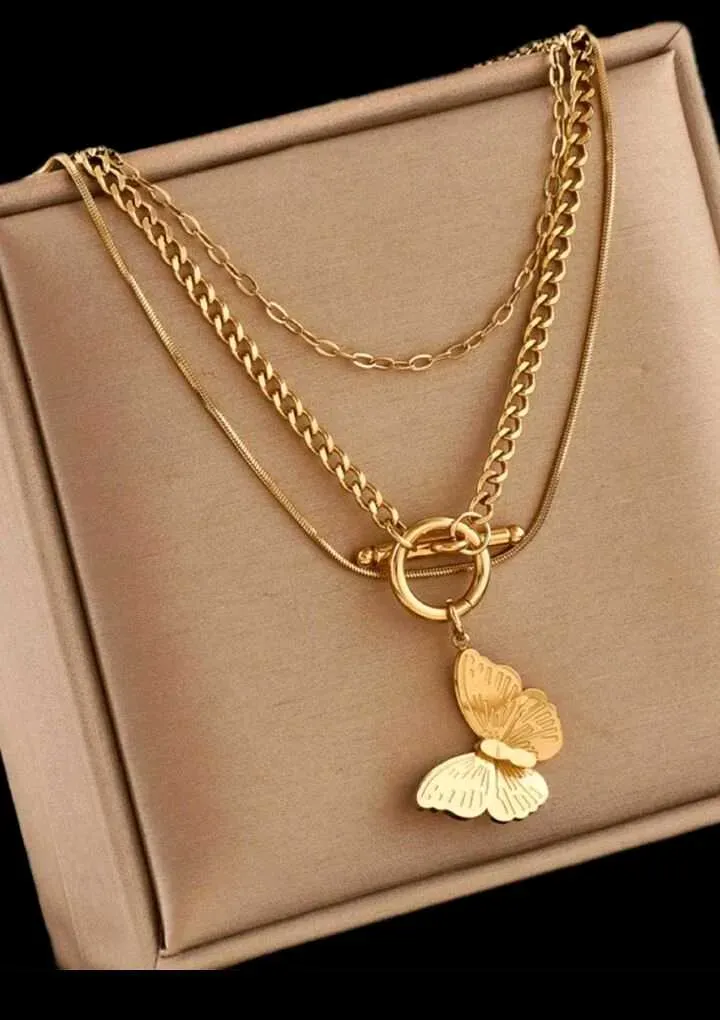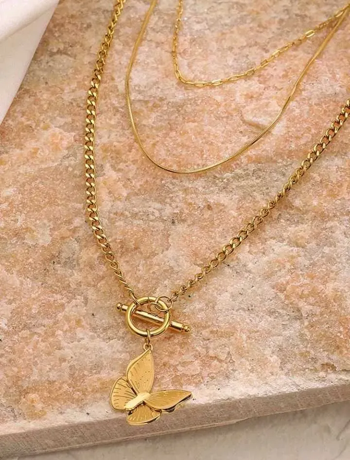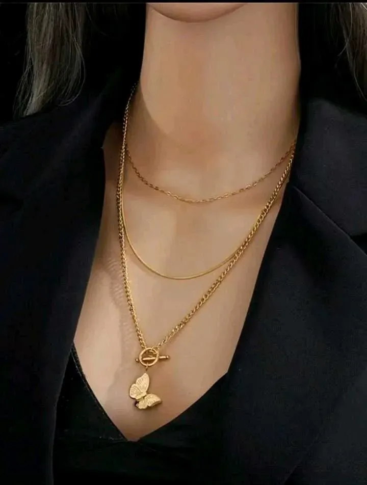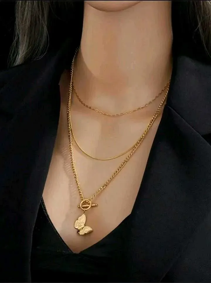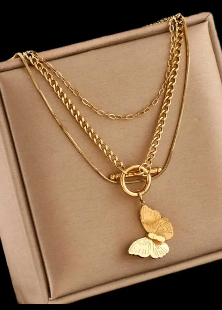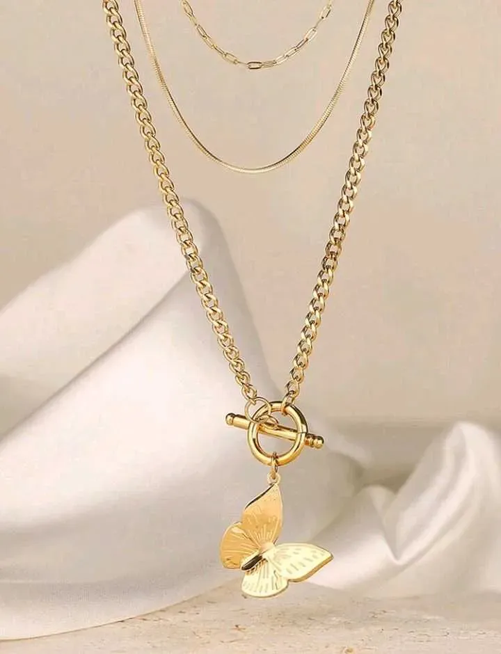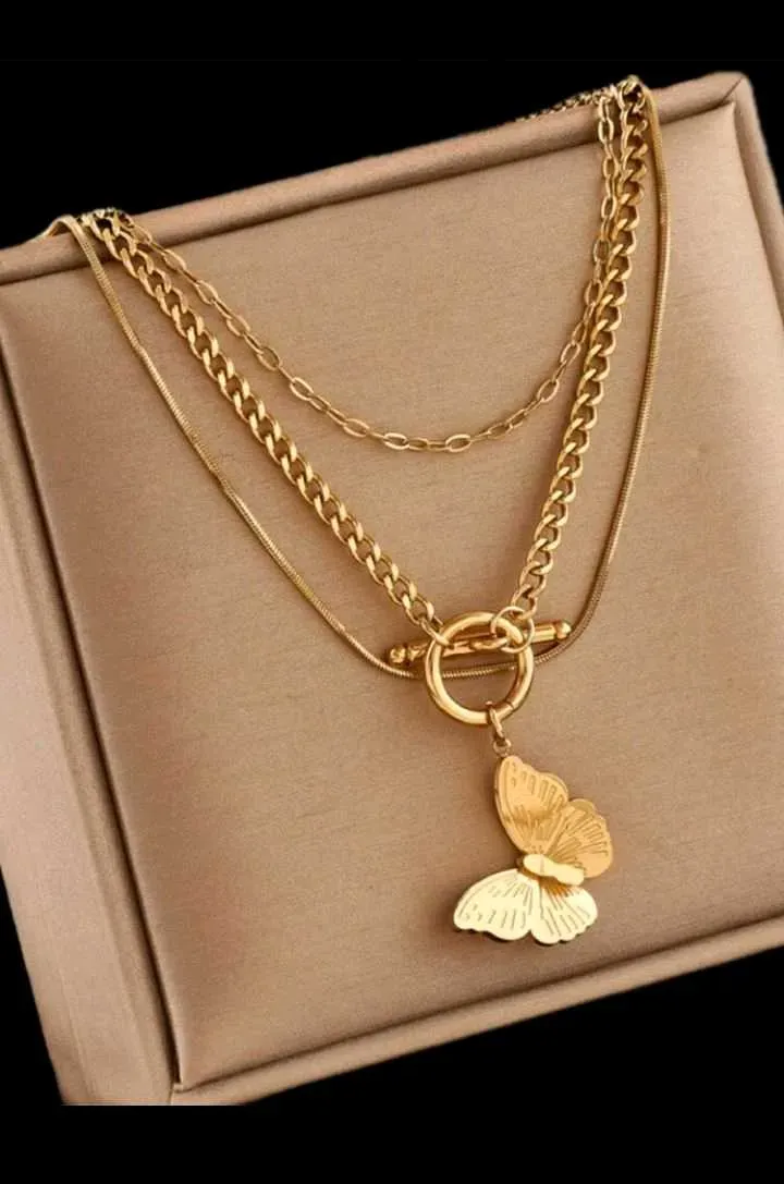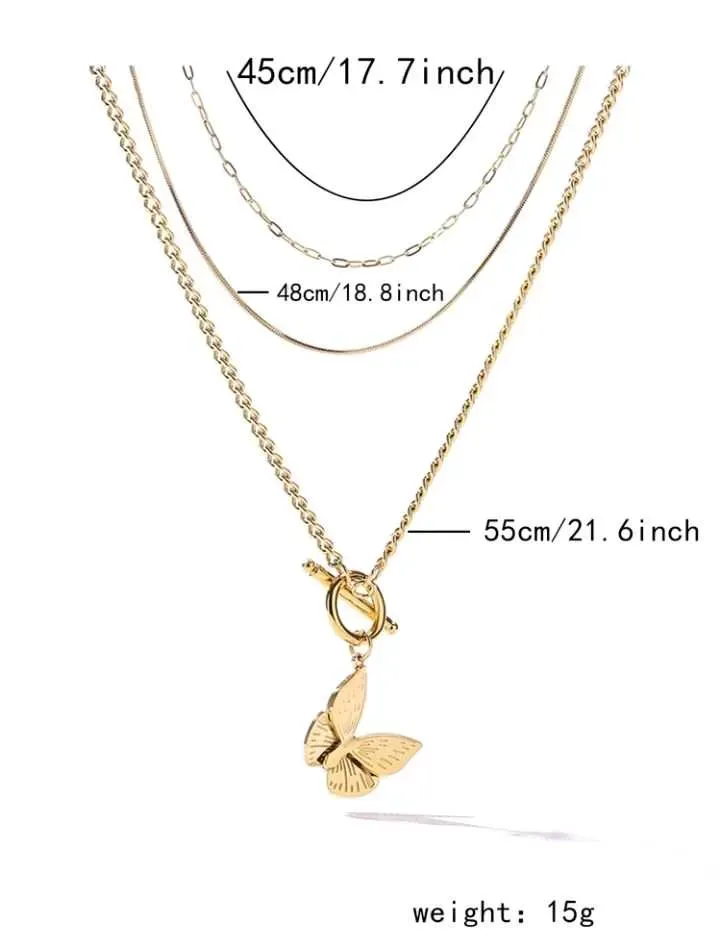 Art 14_ Collar de cadena de suéter de moda de varios niveles con colgante de mariposa