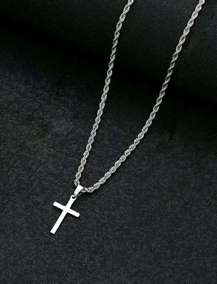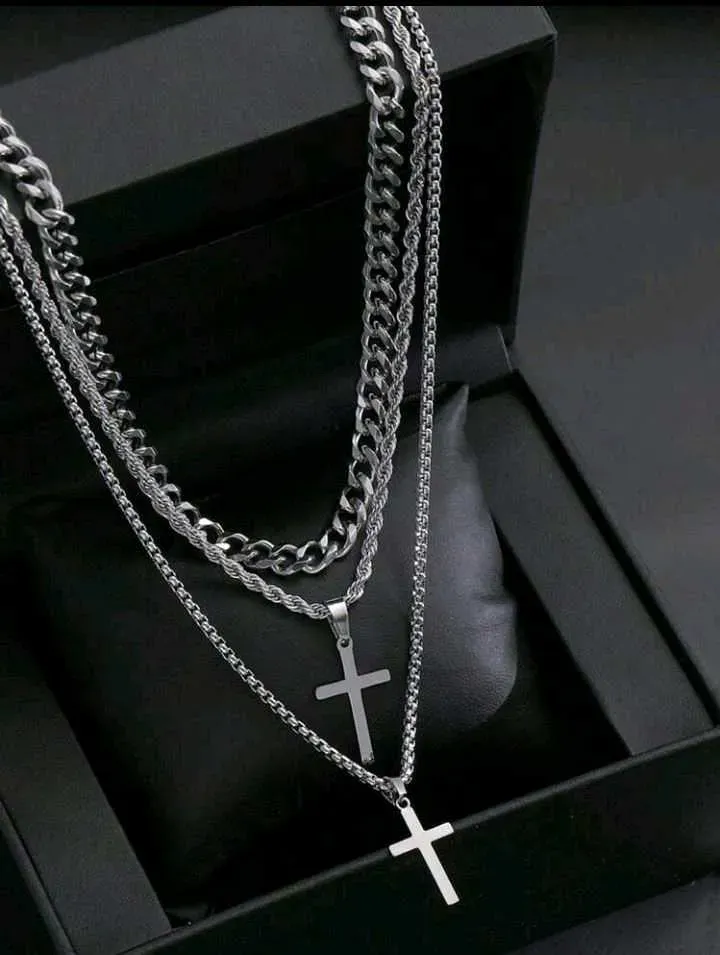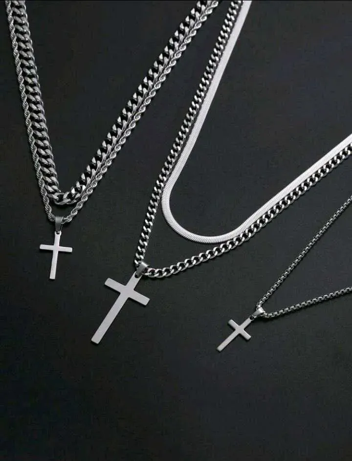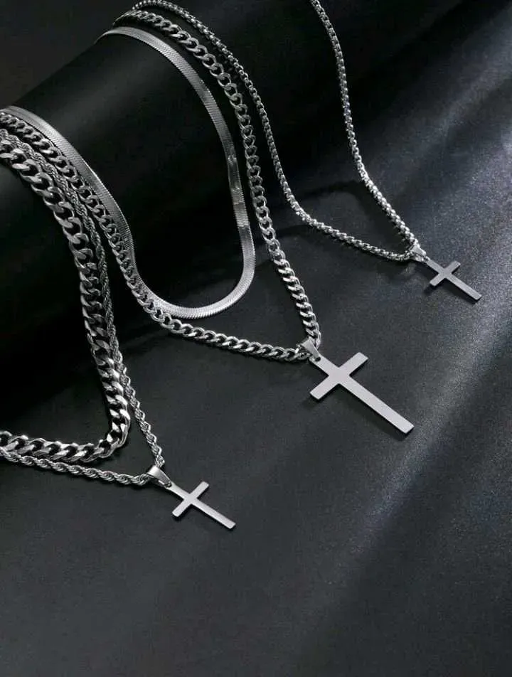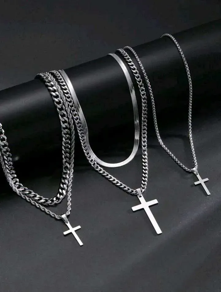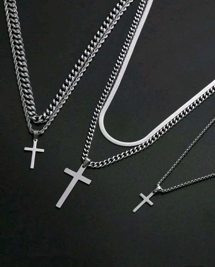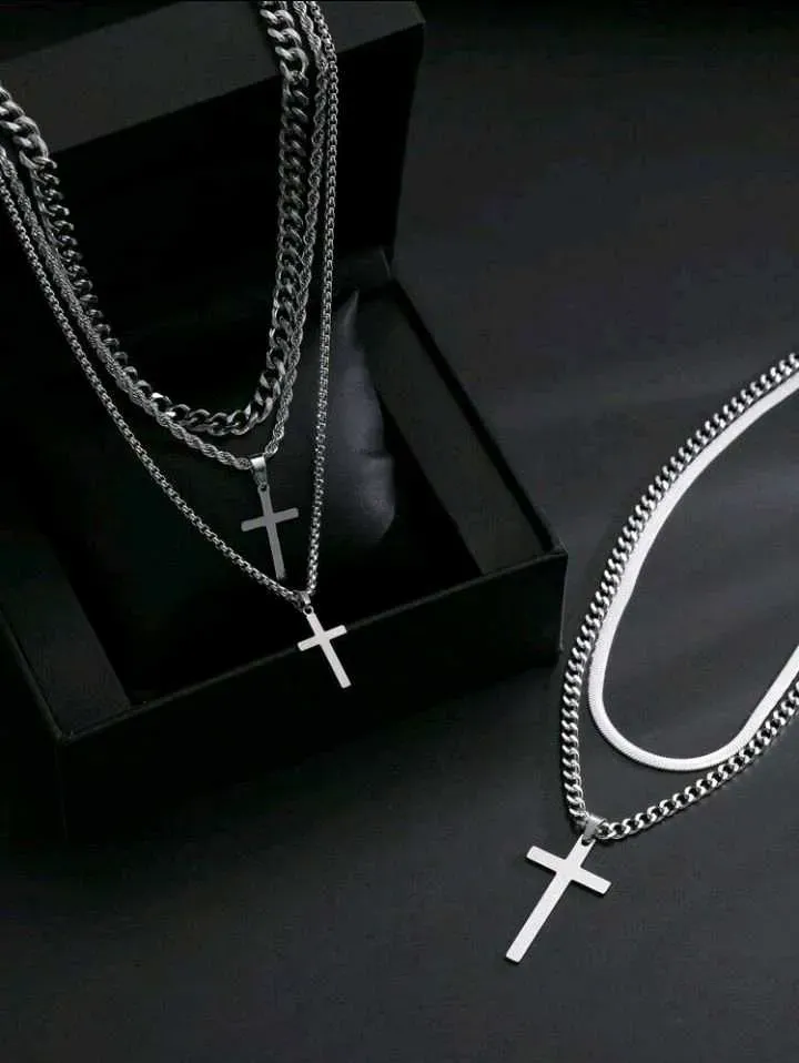 Art 21_ Set de 3 collar de cadena multicapa con colgante de cruz