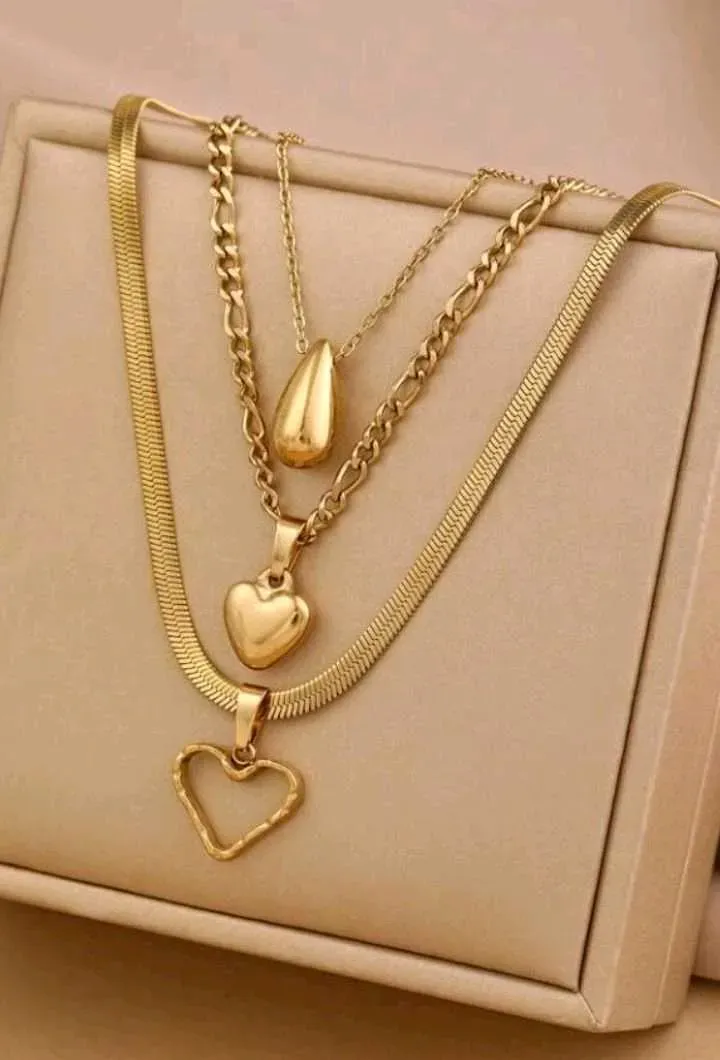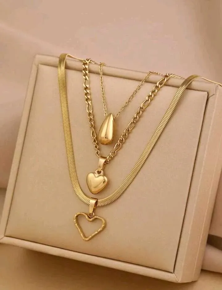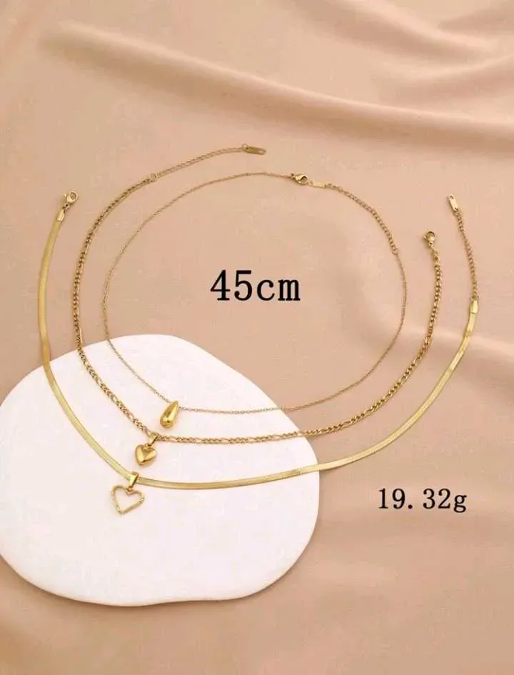 Set de 3 collares de acero inoxidable dorado: 1 colgante de semilla de melón, 2 collares con colgantes de amor, apropiados para uso diario, ideales como regalo para el Día de San Valentín, Día de la Madre.